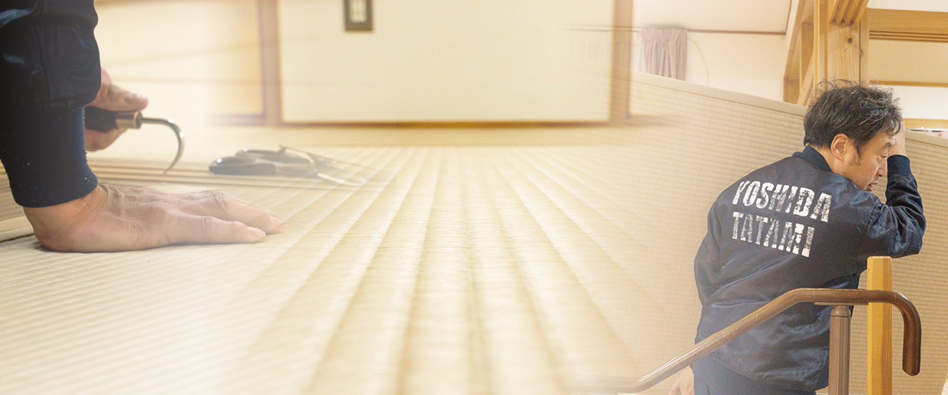 畳はお客様の生活の一部です。身体を休める寝室、大切なお客様をお迎えする客間、そして、家族が集まるリビングなどで畳 は使われています。お客様が必要とされるときに私たちは畳の新調や表替えなどのサービスを誠実かつ迅速に提供させていただくことで、畳の上での心地よい生活へ向けてお手伝いできればと思っております。